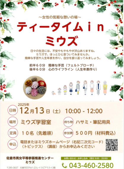 問合わせ 男女平等参画推進センターミウズ ☏460-2580